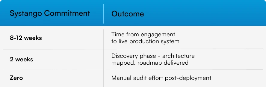 Systango is a publicly listed AI-native digital engineering services company. We help regulated fintechs and lenders move from AI experimentation to production-grade credit risk management transforming how software is built through AI-native SDLC and a governance-first approach to financial risk management. From funded startups to enterprises like Google and Cisco, we are our customers’ technology partner AI-native by design, governance-first by principle, outcome-accountable by default.