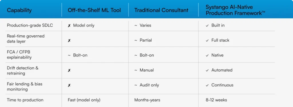 - Sandbox-to-Production Gap: Models that perform in testing behave differently in live environments. Without an AI-native SDLC, this gap stalls the entire loan underwriting process by months.