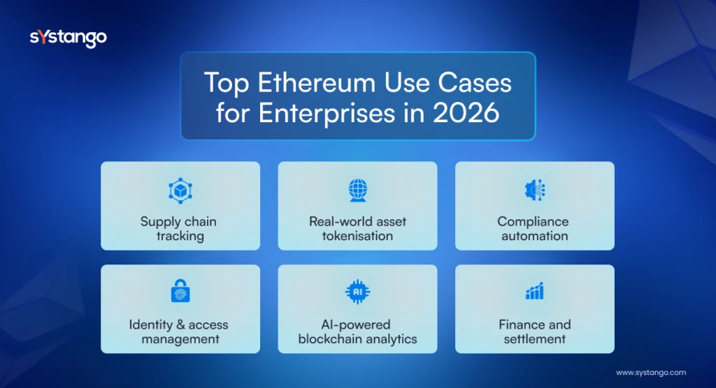 In 2026, organisations are using Ethereum to power tokenised assets, supply chain traceability, decentralised identity, and automated compliance workflows. Advances in AI-driven blockchain analytics and enterprise-ready Layer-2 rollups are also making Ethereum more scalable and operationally efficient for high-volume business environments.